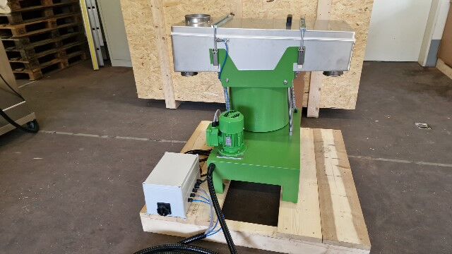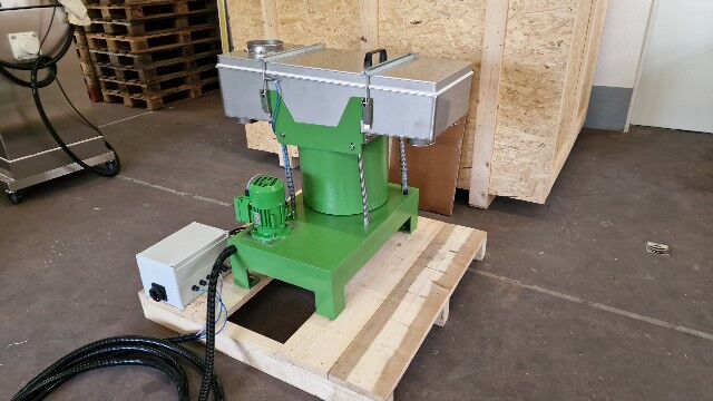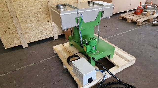 Tamiseur SIFTOMAT 1 K 2S + 1R pour enlever les particules surdimiensionnées et pour la dépoussièrage des résidues uranifères. La machine est appropriée pour l'utilisation dans les zones Ex 1 et 21.