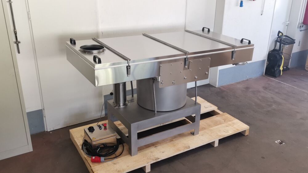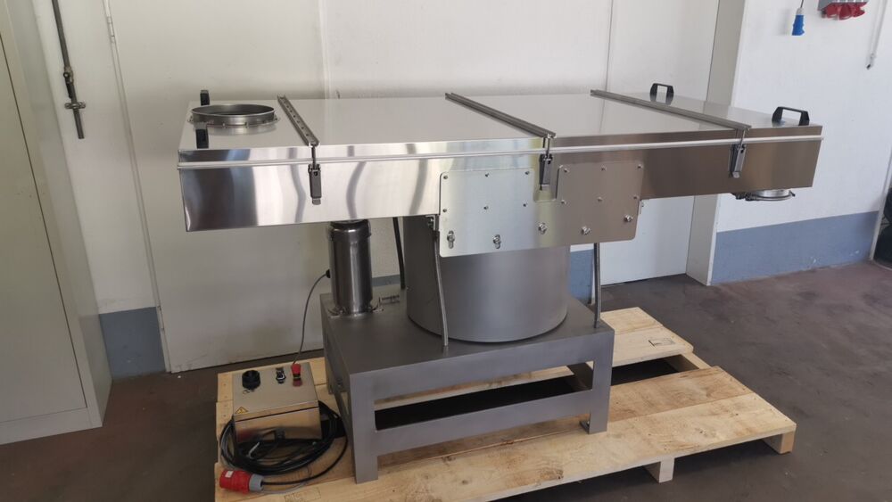 Tamiseur SIFTOMAT 7 K 2S + 2R pour la classification de brisures de nougat. Débit env. 600 kg/h