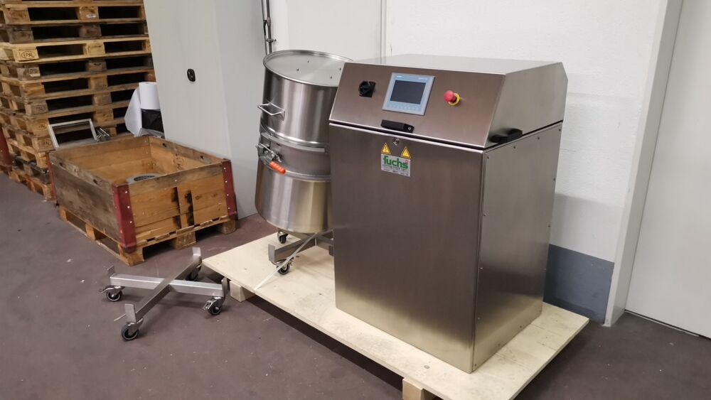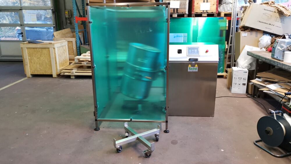 Retourneur de fûts MIXOMAT C-HE 200 pour et avec fûts de 200 l en 316L pour l'homogénéisation de produits pharmaceutiques