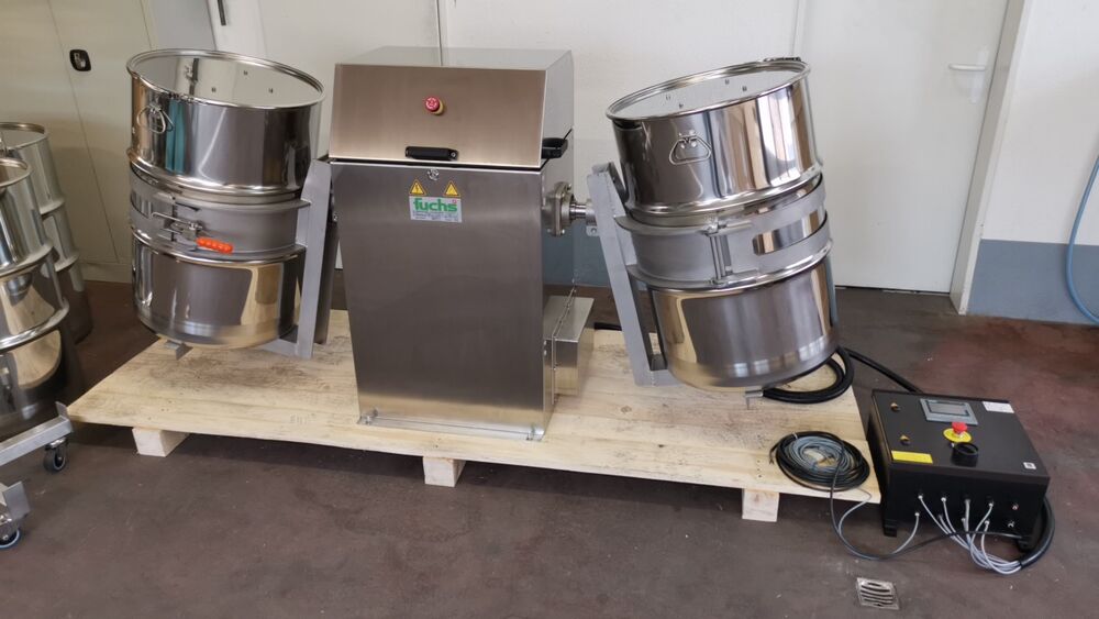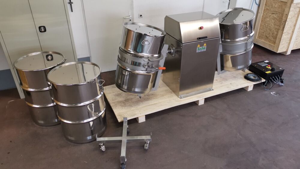 Double-sided drum tumbler MIXOMAT B 200/200 HR comfortseries in Ex-execution (zone 22) to blend two 50 gal - drums at once