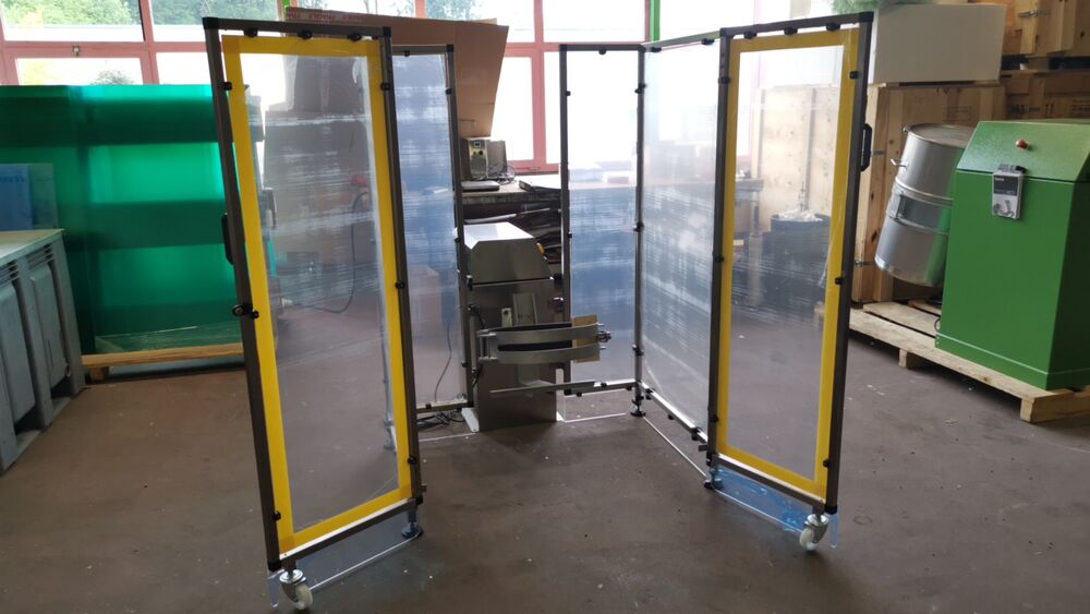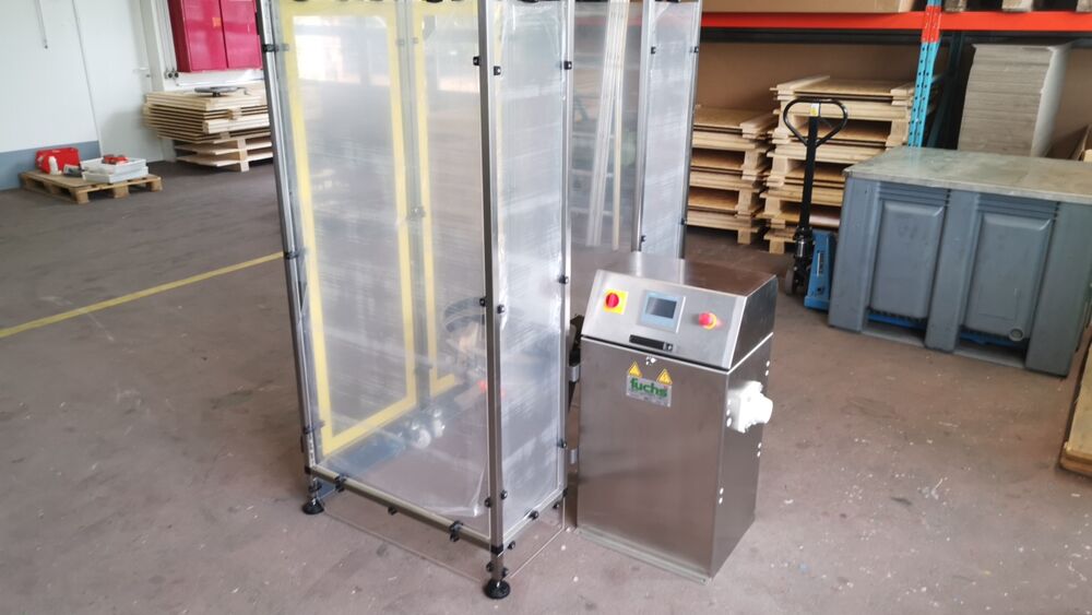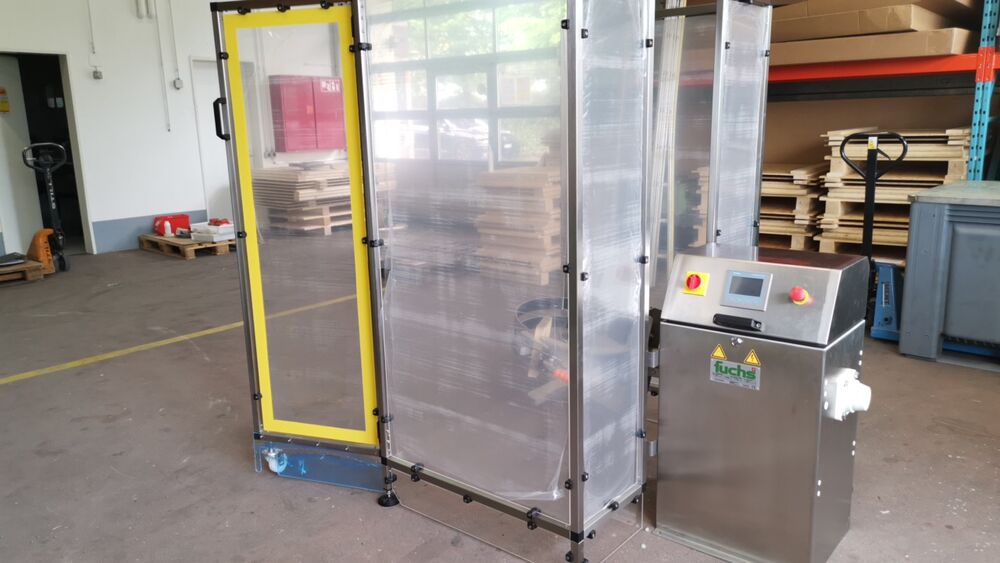 Drum tumbler MIXOMAT B 50/- HR comfortseries, with holder adapted to customers special drums. Mixer is used in the production of batteries in the automobile industry.