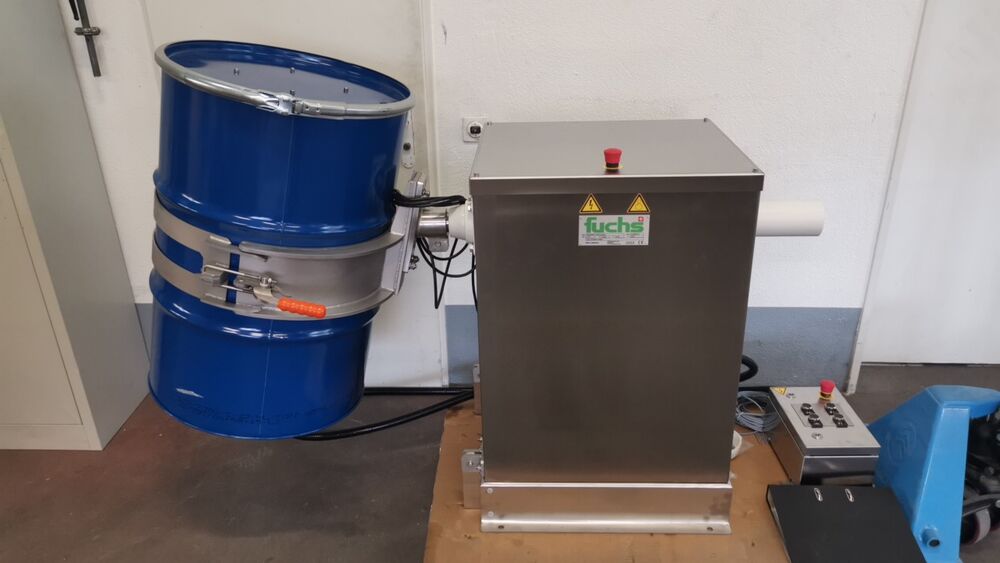 Tilt-to-load drum mixer MIXOMAT C-SE 220/- ecoline for homogenizing plastic granules