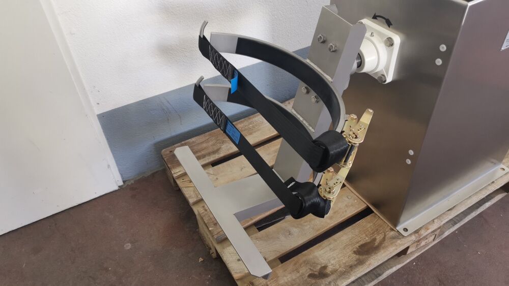 Drum blender MIXOMAT B 100/- SP comfortseries with spanset belts customised to customers drums