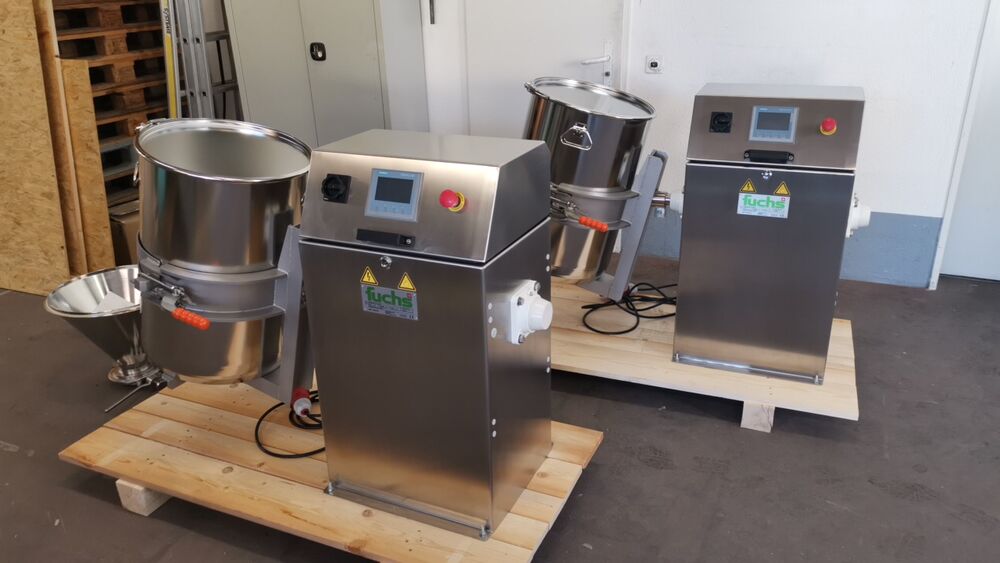 Drum mixer MIXOMAT B 100/- HR comfortseries with 26 gal drums, funnel and butterfly valve