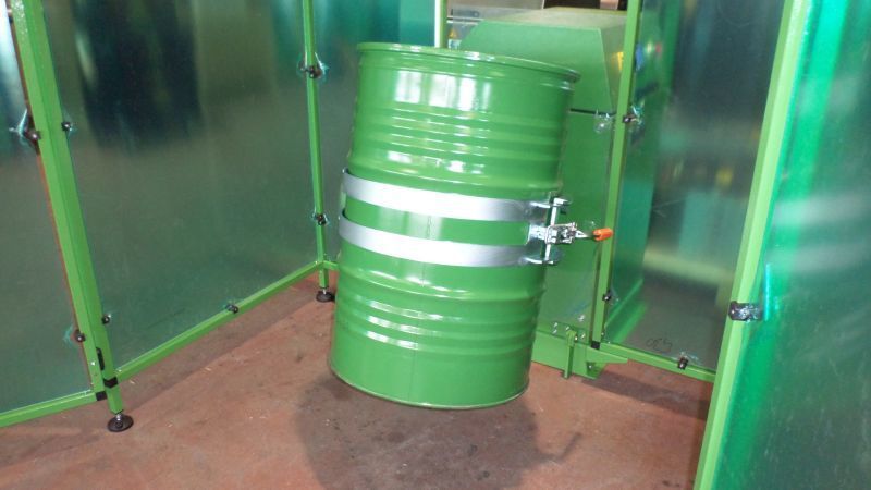 Electrically tilting drum blender MIXOMAT C-SE 200/- HR adapted to customers drums.