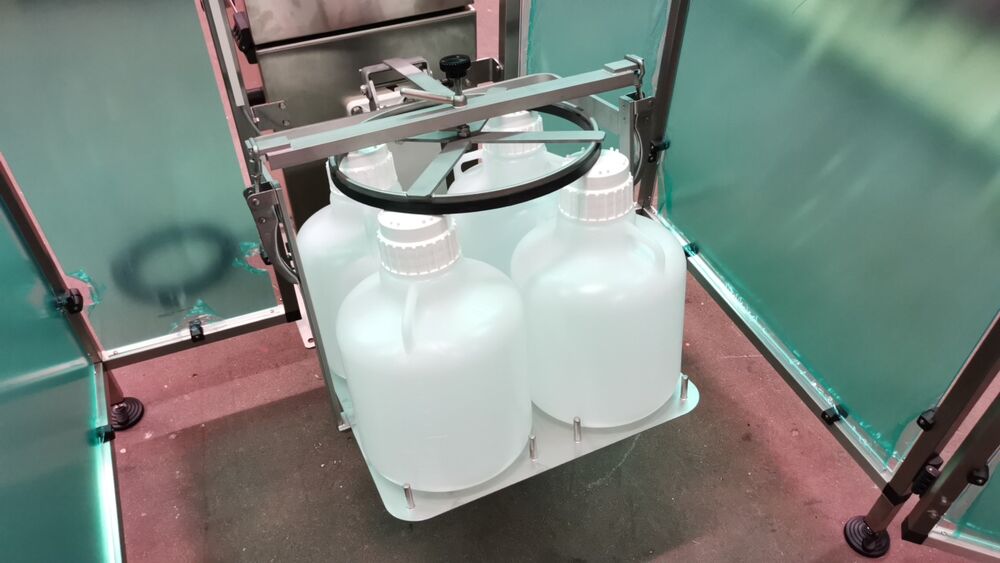 Taumelmischer MIXOMAT B1 comfortseries mit Aufnahme für vier kundenseitig beigestellte 20l - Behälter