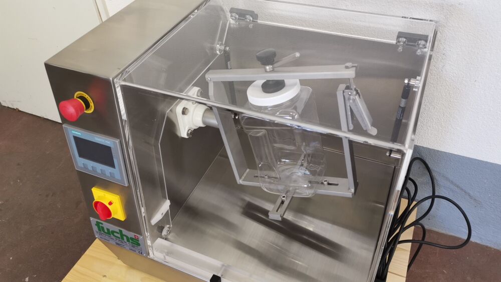 Labormischmaschine MIXOMAT AK 10/- comfortseries angepasst an kundenseitig beigestellte rechteckige Mischbehälter von ca. 4 lt