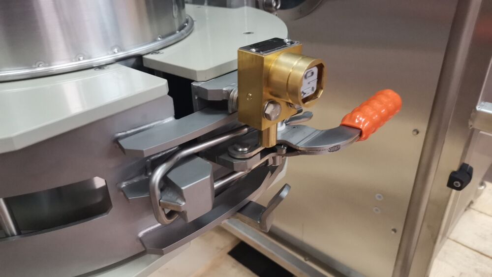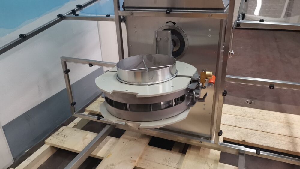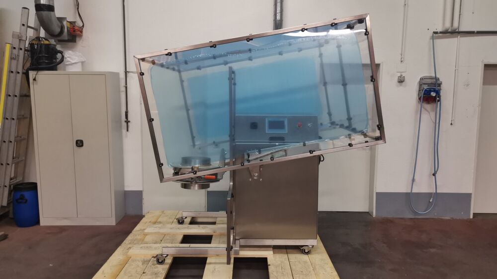 Mobiler kippbarer Pharmamischer MIXOMAT C-HE 100/- HR mit Halterung angepasst an kundenseitig beigestellten Behälter
