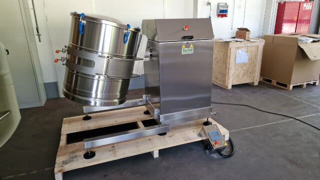 Kippbarer Taumelmischer MIXOMAT C-SE 400/- zum Mischen von Braunkohle in 400 Liter Behältern